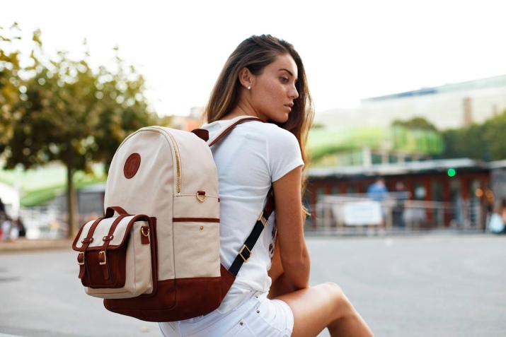 A backpack bag harmoniously complements the image of an elegant lady, freeing her hands and destroying the stereotype that the backpack is something bulky and gives a shade of clumsiness.