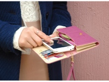 A great option for a cell phone is a cosmetic bag. Made of genuine leather, it can be closed with a zipper, button or velcro. Of course, it is not dimensionless, but women manage to put a lot of useful things there. Outwardly, this is a small elegant handbag, but its contents can cause surprise and admiration, especially if you did not forget to put a mobile phone there.