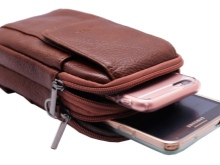 Men often put a purse on a belt, which gives them the look of a business man. There are many models for attaching the phone to a bicycle, to a belt, along with a bottle of water, to a backpack and hundreds of other options.