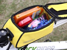 They come in several varieties: soft, hard, single-layer and consisting of several layers. May have several departments or a single volume. The bag is comfortable, small. Small things are placed in it. It is fixed with Velcro. The bag on the steering wheel serves as an addition to the main bag, which is mounted on the frame. In such a bag you can put: phone, documents, keys or water. The bag on the steering wheel is practical, it allows you to quickly get the necessary thing, and when dropped, helps to secure objects in it. Some bicycles may make driving difficult.