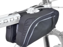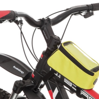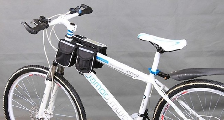 The model is designed so that when moving the bag does not swing and does not interfere with the cyclist when turning the pedals. Small items are placed in it, at the discretion of the owner. Elegant bags for attaching a smartphone were designed for the front of the frame. This is very convenient when the smartphone acts as a navigator. Compartments for trifles are located on each side. With heavy workload, it can upset the balance of the bike.