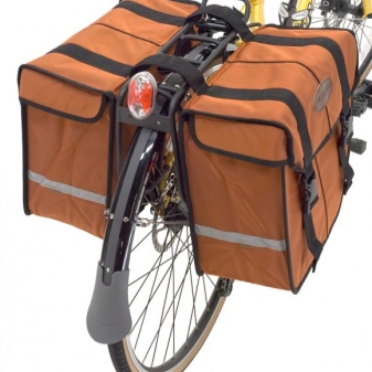 Small items can also be placed in it. The bag is fixed on the frame under the saddle with special fasteners and Velcro to the pin under the saddle. For evening walks, you can attach a flashlight to the bag. This model does not upset the balance of the bike, so heavy items can be transported. The bag has some disadvantages. Firstly, it often gets very dirty, as it is located next to the rear wheel. Secondly, access to luggage is limited, you have to stop. In the event of a fall, safety is reduced to zero. Thirdly, the saddle bag is not suitable for every bike model.