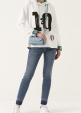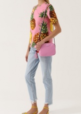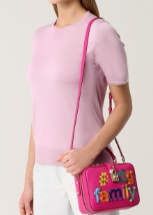 - A hit of recent seasons are accessories, on the front of which are various applications. The Italian brand produces products not only with flowers, but also with images of cities, butterflies, animals, etc .;