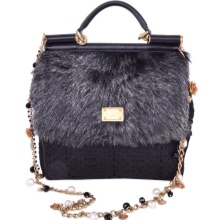 - The hallmark of Dolce & Gabbana are plain dark bags with contrasting decorations. It can be flirty beads or golden chains;