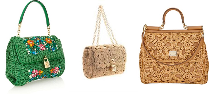 They are complemented by metal fittings that look interesting against the background of a knitted composition. These bags are capacious, as they do not have a rigid frame.
