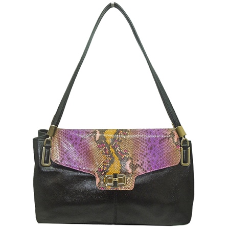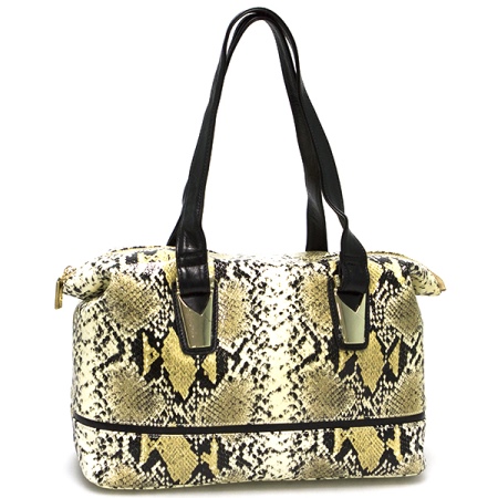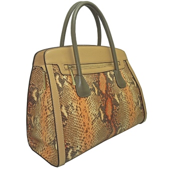 The magnificent model was created by craftsmen using the embossing technique, coupled with spectacular staining. The bag is made of genuine leather with a snake skin finish and is complemented by lacquer inserts and golden fittings. A very beautiful stylish accessory that matches the latest fashion trends.