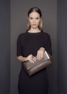 In the clutch series, models with the double-valve effect are interesting. An unusual design technique introduces a special mood into a modest style. A product with a minimum of finishing lines is decorated with a rounded valve over a regular rectangular one. The highlight of the model is the edging of the edge of the upper valve: a thin leather cord is threaded into the holes located along the edge.