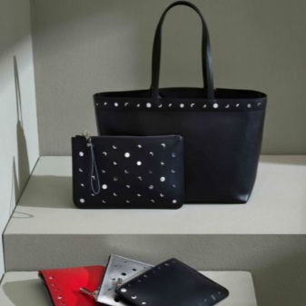 One of the main design techniques is the emphasis on the texture of the material. The priority is smooth skin, texture with embossed, extruded pattern, varnishing and print. Occasionally, a fashion designer uses a contrast technique, placing a wide edging on the upper edge of the bag. In other models, the edging performs a shadow effect, gently emphasizing the cut lines.