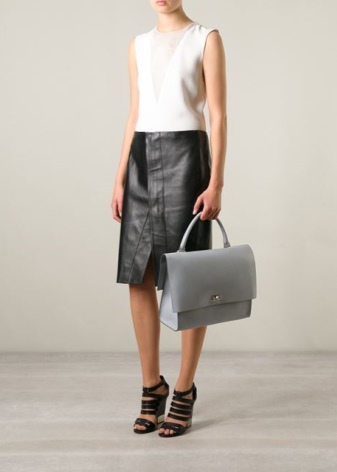 - 2017 model - resembles two clutch envelopes connected to each other. It has an additional pocket that closes with a zipper, and a hinged lid flap. The handle is a long adjustable strap. As a rule, two parts of a bag are made of leather in contrasting colors.