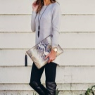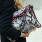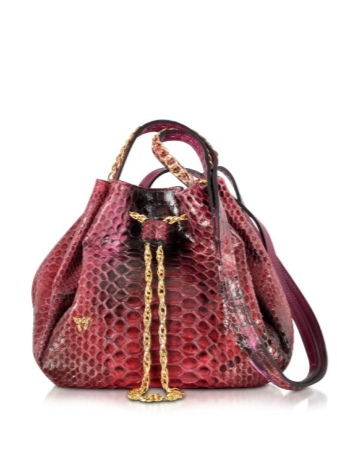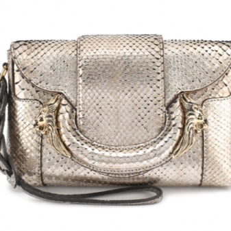 Python bags are in the collections of accessories of many fashion houses. A model with a silver tint from Roberto Cavalli looks original, stylish and luxurious. This is a small handbag with a wrist strap. This accessory is suitable for almost any evening outfit. Its discreet coloring will appeal to girls who do not particularly favor the snake print.