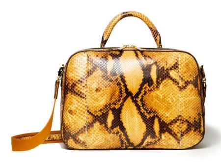 The Nina Ricci collection has a small bag for courageous girls. It is made of python skin with bright black and yellow scales.