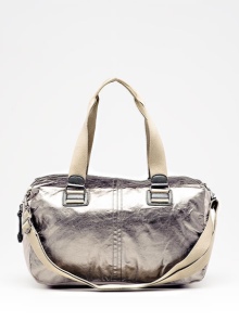Fashionable gizmos are made from high-quality and durable nylon and genuine leather in saturated colors.