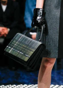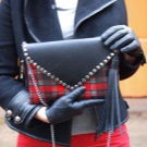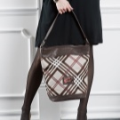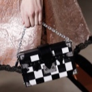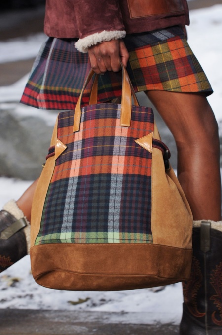 - A suede checkered bag in the winter will complement a similarly-styled skirt, a dark brown sheepskin coat with white fur, and tall black boots with small heels.