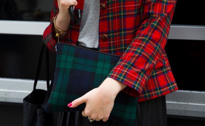 If you bought a fashionable plaid handbag, then do not overload the image with clothes with the same print. You can pick up one more thing in a cage, for example, a shirt, but no more.