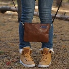The brown accessory will look great in a youth look. For this, ordinary jeans, any skirts, sweaters, t-shirts and tops are suitable. Here you can unleash your imagination. Under such sets fit pouches, shoulder bags, rings or fringed items.