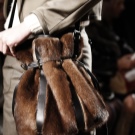 This material is distinguished by its velvety surface, which goes well with brown. But you should be very careful with such a bag, as it quickly and easily gets dirty and does not like contact with water.