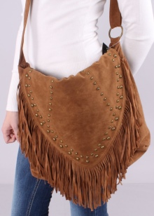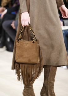 - A playful bag with a fringe can become a breath of fresh air in the image. Such an original thing looks especially bright and attractive in brown. Most models are available in these shades.