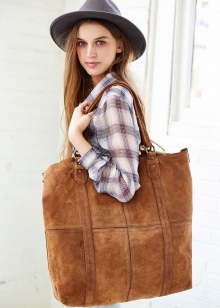 A suede brown bag will look no less beautiful and feminine in a ladies' image.