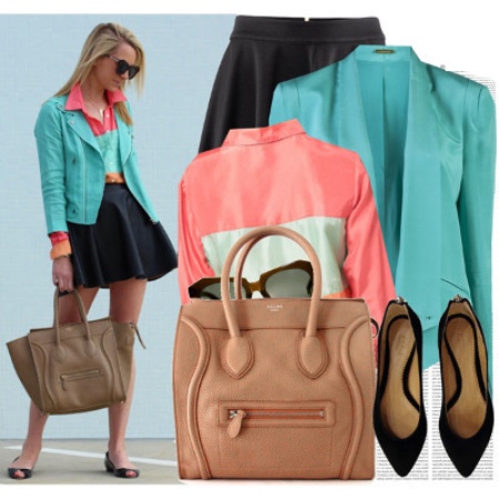 Put on a wide and short skirt, a pale pink shirt and complement this set with a mint jacket and pointed dark shoes. In this ensemble, a large bag of a light brown shade will look great.