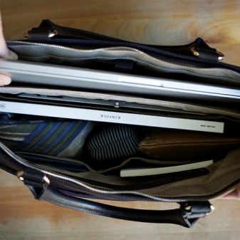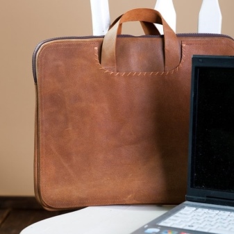 For business meetings and friendly gatherings, a classic bag made of genuine leather that resembles a case in its forms is suitable. If the laptop is used infrequently, only for a short-term transfer from one room to another, then you can limit yourself to folder covers that will protect the device from scratches. However, in the event of a fall, the laptop will be hopelessly damaged.