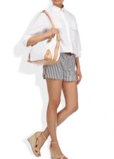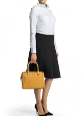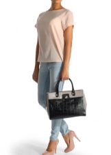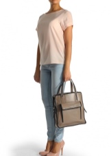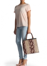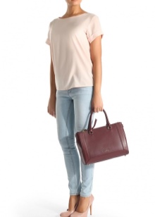 One of the brand's trends are bag bags. Despite the brevity of the model, they are stylish and expensive. More often they are made of genuine leather with embossing and decorated with a wide contrasting strip along the bottom.