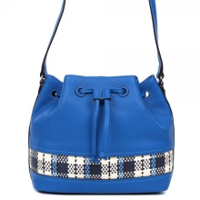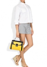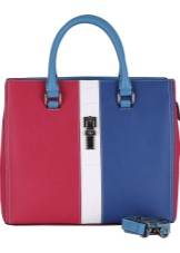 Surely there are contrasting lines that emphasize the color change. The basis of such a bag can be round, always stiff. The top is tightened with a thin leather belt, forming folds in the upper part of the product.