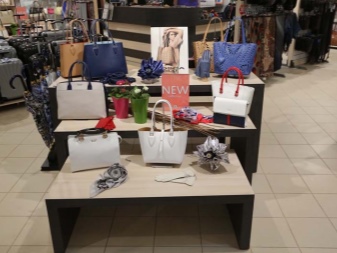 Most models have a rigid shape, a stable bottom and double handles of convenient length. In addition to short handles, the products are equipped with a long thin strap for carrying over the shoulder. Some products can be worn on the elbow.
