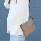 Contrary to expectations, they should not be combined with jeans, it is better to add a dress or cotton pants with such a bag.