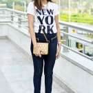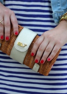 A win-win option - clothing in a marine style. Choose trousers or a dress in red, blue and white, and complement the look with a bag of a suitable color. The main thing is not to overdo it. If your outfit already contains these three colors, it may be more appropriate to complement the look with a black handbag.