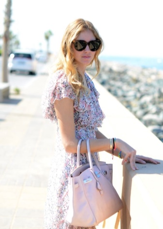 For a dress or skirt, you can pick up a small handbag on a long strap or clutch. Straw bags are popular, it can also be light skin or the corresponding types of textiles - silk, satin, velvet.