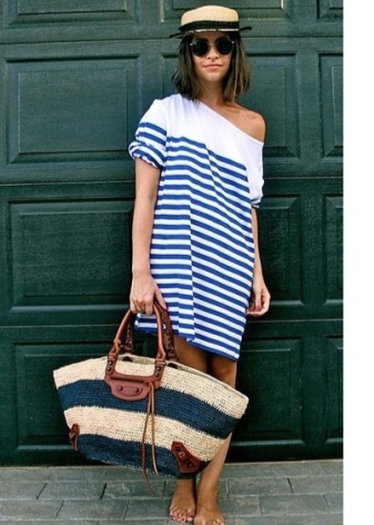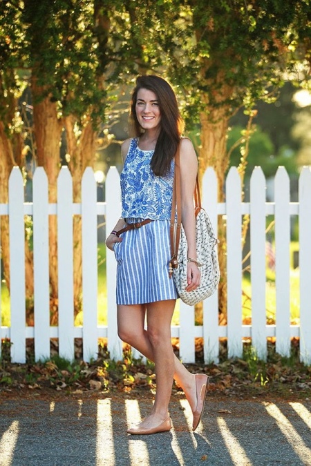 Another great solution for every day is a concise short dress and sandals or sandals with thick, steady heels. Those who prefer feminine looks can choose a shirt dress with a full skirt or a sundress on the straps.A fashionable straw hat, wedge sandals or lace-up espadrilles complement the look.