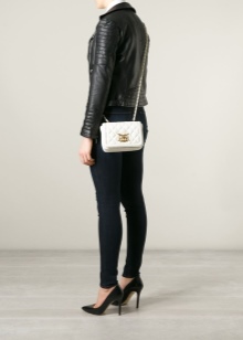 Used to decorate bags and accessories. Massive pendants are located on the tongue of the lightning, in the front there are metal parts with the brand name. Clutch bags are equipped with long chains instead of handles, a massive clasp. Rivets, contrasting seams can be located on accessories.