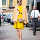 - A light and youthful look will come out of a blue floral skirt, white blouse, blue heeled sandals and a yellow envelope clutch. A blouse can be replaced with a light sweater with a long sleeve, and a skirt with white jeans. In these ensembles bright accessories with metal fittings will look great.