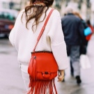 You can revive the ladies' image using a compact bag with pendants in the form of tassels. They can have a contrasting and bright color that attracts attention.