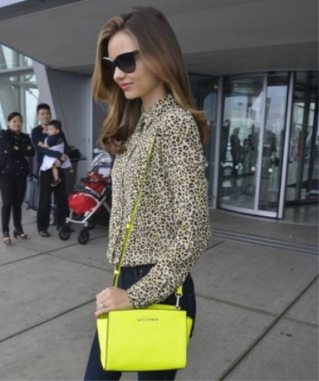 - Wear black skinny pants and a high-necked leopard shirt and complement this kit with a bright yellow or green handbag over your shoulder.You can complete the look with sunglasses and pointed boats in the color of clothes.