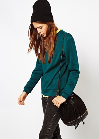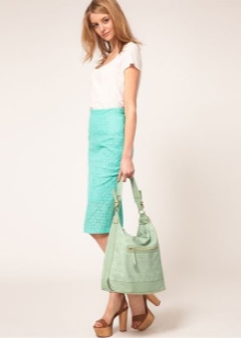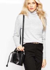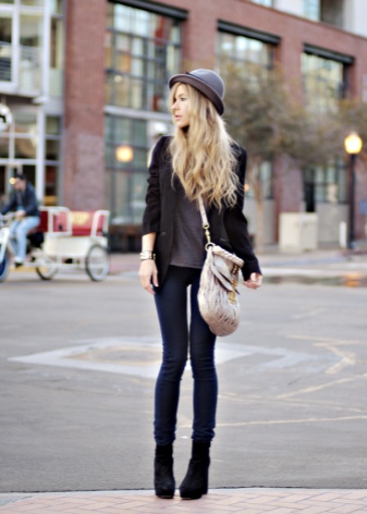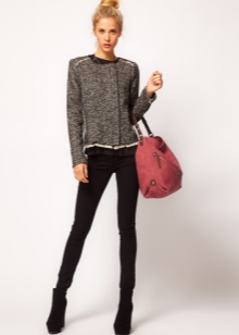 - For a cool demi-season, you can pick up a leather jacket or a leather jacket and add it with a bag in color. Such ensembles look very impressive. They may contain jeans or leggings, as well as skirts of various cuts.