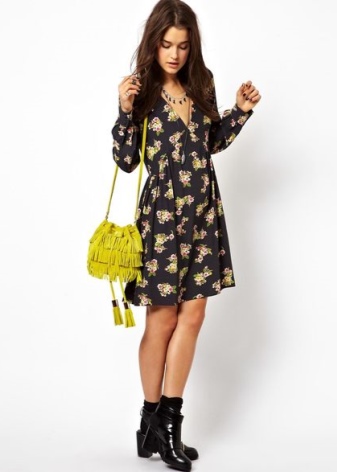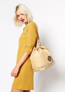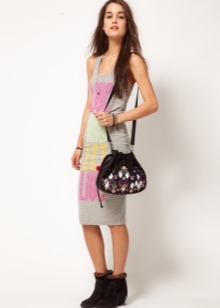- Bags are no less harmoniously combined with women's dresses. They can be straight or fitted. Ideal look outfits, consisting of light and flowing fabrics. Such options are ideal for the summer season. Open heeled sandals or flat sandals should be worn on your feet.