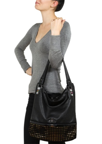 There are also very original options with a shoulder strap. It is elongated, and besides it, on the upper part of the handbag there is a denser and shorter handle. Such accessories can be worn on the shoulder or in the hand.