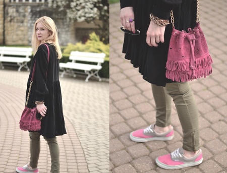 They can never be combined with classic things. Such an ensemble will look inharmonious and very strange. Do not like modern fashionistas and a clasp in the form of a lace. It is not as reliable as, for example, lightning, riveting or a magnet.
