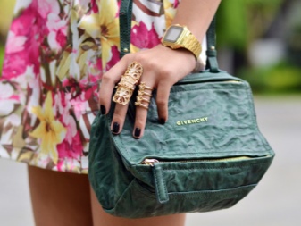 Accessories of bags are buckles, rings, locks and other metal elements. To date, the trend is the fittings of two options - gold and silver. You should choose it based on which jewelry is more in your own arsenal - from yellow gold or white. Compliance with this simple rule will give the owner of good taste. The main thing is that it should not be too much. For example, choosing a clutch on a chain for an evening dress, you don’t have to worry about which pendant to wear - the chain is already there, and you don’t need more.