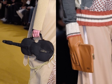 But those who like to shock the audience and attract attention to themselves, designers were able to please. It is unlikely that many, for example, have a bag-reel with gold thread. It is worth paying attention to the collection from UnderCover - there are bags in the form of a cover from the violin or a clutch glove - an indispensable thing for scattered girls.