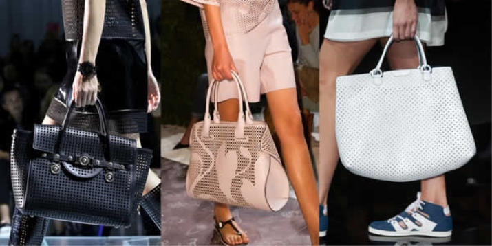 Perforated bags are an excellent solution for trips to the countryside and the beach. Thanks to a little “blowing” you don’t have to worry about the condition of the wet towel on the way home. Such "holes" make the model light and airy, and its owner seems to be ready to go on a romantic trip at any time.