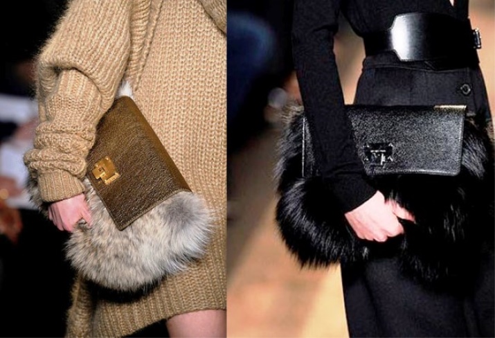 The main trend of winter is bags made in whole or in part using fur. Thanks to natural colors, they are perfect for almost any clothing.If the traditional colors seem boring, you can play around with the details again and add, say, to a simple beige bag with fur trim the same shade, a bright belt, like the Akris designers did.