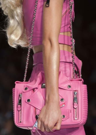 In the same collection, the designer continued the theme of bag-jackets, only now it, to match the Barbie doll, has become a bright pink color. Such an accessory looks very interesting - the infantilism of color is diluted with a daring design. If pink is not to your liking, opt for “jackets” from the previous collection - classic blacks.