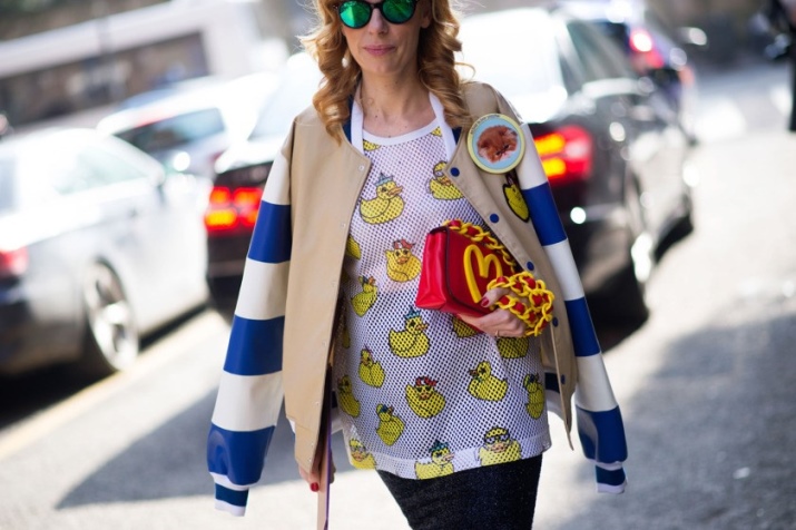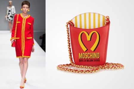 Another theme of this collection is fast food. The McDonald's logo ceased in the Moschino logo, and models with handbags in the form of boxes for Happy Mila and french fries appeared on the podium. If you are also committed to American culture and fast food restaurants, you will love this accessory.
