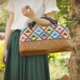Models woven from vine or straw have a natural color with beautiful and complex shades. Their weaving is complex, delicate. Such models are not customary to fully paint in rich and vibrant colors. The natural color of the bag is often emphasized with additional details that can be painted in purple, orange, lilac or raspberry color.