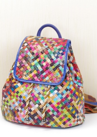 Catchy, expressive leather backpacks with multi-colored woven inserts for handmade lovers found their fans. This model is very convenient and practical, and soft skin creates a cozy effect. They are universal, since a laptop can easily fit in and there is a compartment for documents. Woven backpacks contain not only a romantic image, but also express inner freedom and relaxedness.
