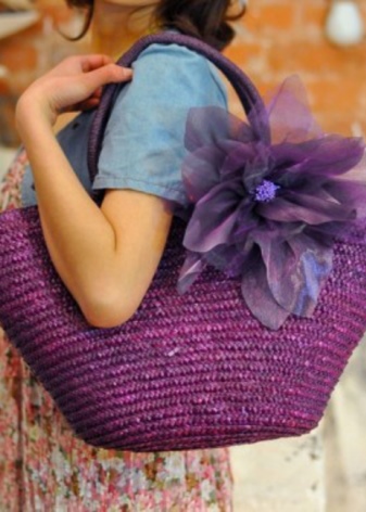 Bags with simpler weaving, made of material that does not have a natural color, can be bright and saturated colors. Solid color models (for example, emerald, blue, red) look original.