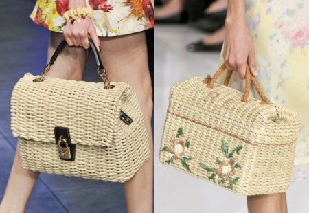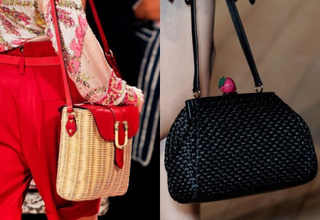 For the first time, woven bags became fashionable in the 50s. Since that time, they are increasingly appearing in the hands of fashionistas who combine them with different outfits. Many use this accessory as an addition to the created image, and some prefer to wear them exclusively on the beach.