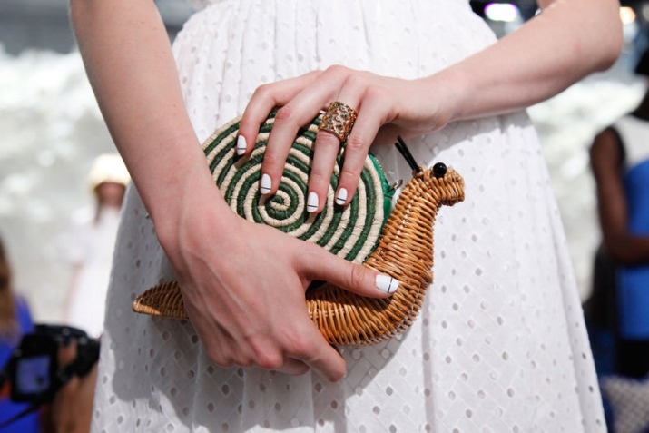The white model looks great with a blue and red outfit. A small model combined with pastel shades will help to create a romantic look. Accessories in beige suit absolutely any shade. They can be called universal.